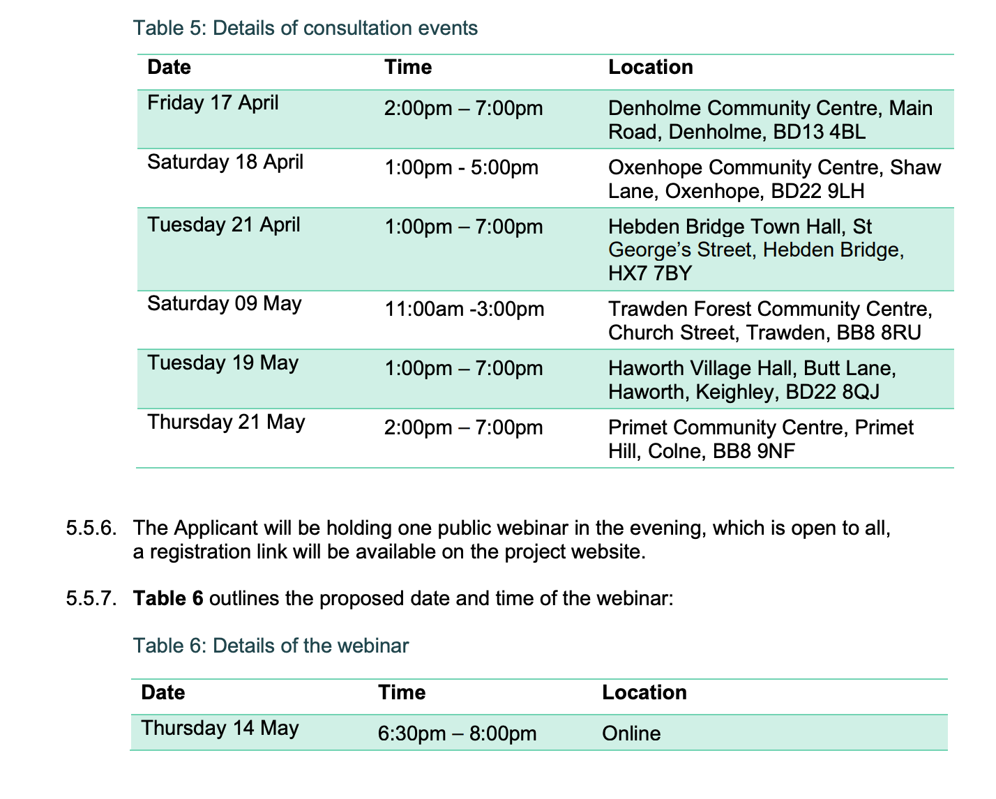 These are the dates and venues of the consultation events :